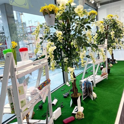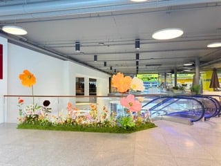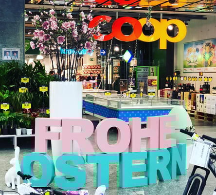 Der Frühling ist in 7 Coop Einkaufszentren eingezogen. Wiggispark, Haag Center, Gallusmarkt, Thur Markt, Karussell, Rhy Markt und Coop Rickenbach. Von selbst gemachten Blütenkugeln über Vasen mit Blütengestecke, ein 3m Blütenring oder unsere selbst gemachten Blumenwiesen.
