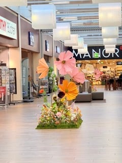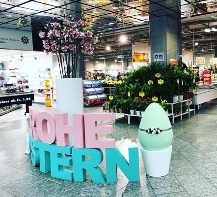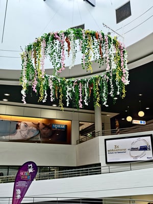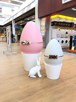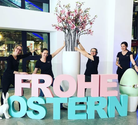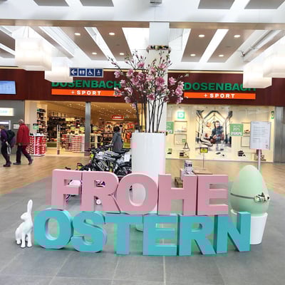 Passend zum Frühling und nach Kundenwunsch von Pastellfarben, dürfen wir die Kunden der beiden Einkaufszentren mit unseren Blumenkränzen, grossen Buchstaben und XXL-Eier, in Osterstimmung bringen. Wir wünschen frohe Ostern!
