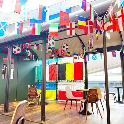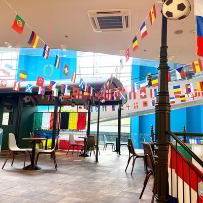 Beeindruckendes Fahnenmeer und Fussballdeko, dass das Herz jedes Fussballfans höher schlagen lässt und die Vorfreude auf die kommenden Spiele noch intensiviert. Taucht ein in die verschiedenen Nationalfarben.