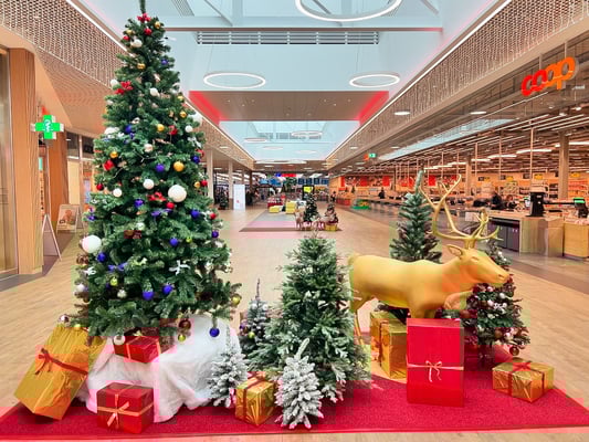 Das neuste Coop Einkaufszentrum erstrahlt nun im weihnachtlichen Flair. Vom Weihnachtsbaum über Rolltreppen-Deko bis hin zu Geschenke-Türme, die den Besuchern ein "Frohes Fest" wünschen, durften wir das Einkaufscenter weihnachtlich dekorieren.