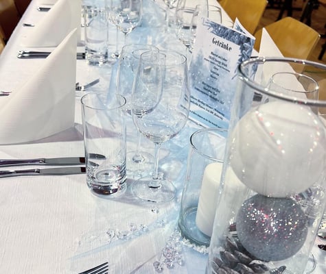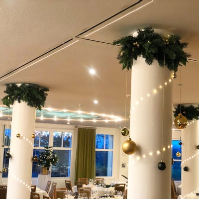 Das Weihnachtsessen ist oft ein Dank an die Mitarbeiter. Ein Dankeschön für das gemeinsame Geschäftsjahr. Damit dieses Essen auch nach Weihnachtsessen aussieht, durften wir hier das Restaurant für den passenden Rahmen dekorieren.