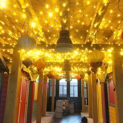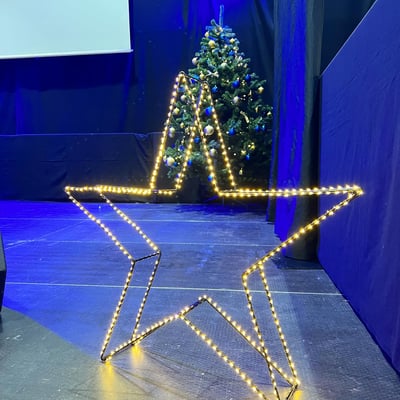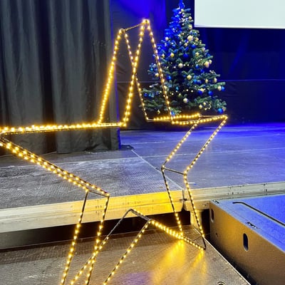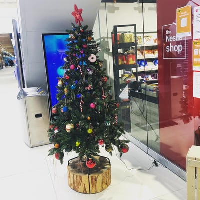 Die Autobahnraststätte dekorierten wir mit diversen Weihnachtsbäumen, Lichterketten um die Rolltreppen, Lichterketten im Aussenbereich und hängende Leuchtsternen an den Decken.