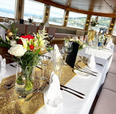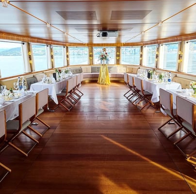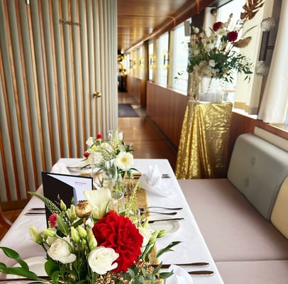 Während 50 Minuten Überfahrt von Romanshorn nach Rorschach, dekorierten wir für die Firmenfeier der Raiffeisenbank Heiden.