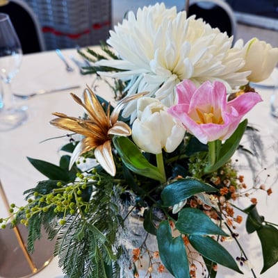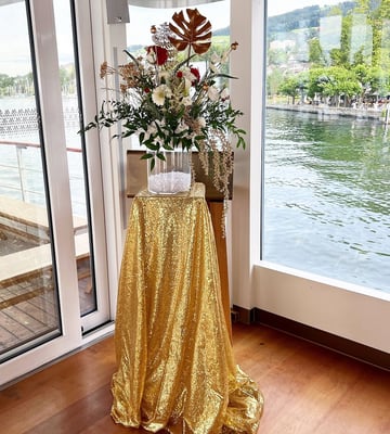 "Gold for Gold" war das Motto. Vom Eingangsbereich zur Tischdekoration durften wir diesen Anlass mit goldigen Akzenten und frischen Blumen, begleiten.