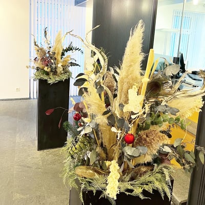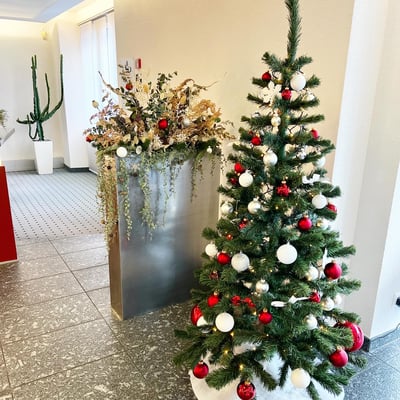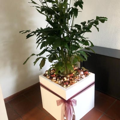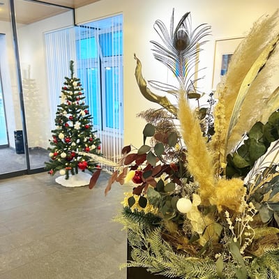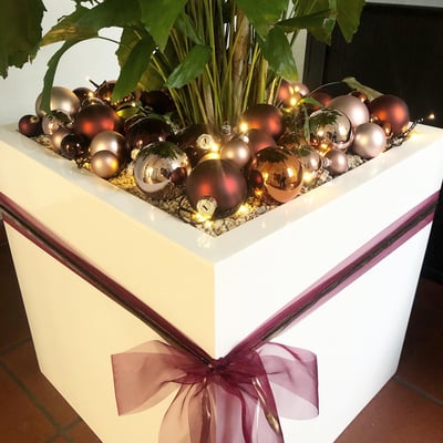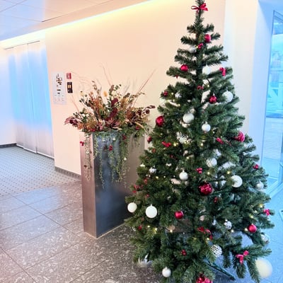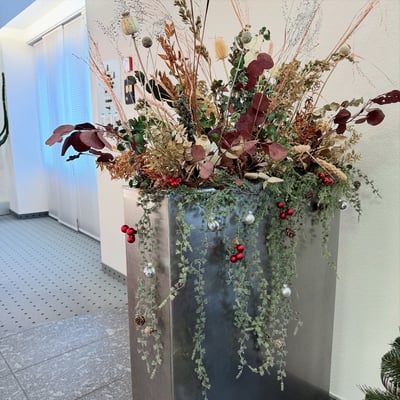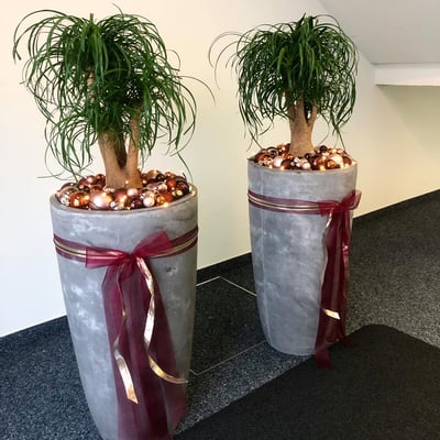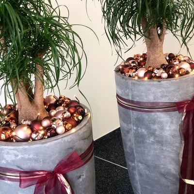 Weihnachtlich geschmückte Pflanzen im Eingangsbereich, welche die Wälli Ingenieure AG in der Adventszeit begleiten.