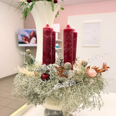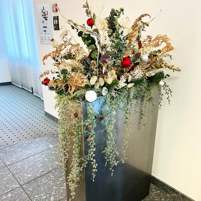 Wir durften beide Schalterhallen von der Raiffeisenbank Arbon und Steinach weihnachtlich schmücken. Die bestehenden Blumenarrangements bekamen einen weihnachtlichen Schliff, dazu stellten wir noch je einen Weihnachtsbaum auf und machten ein weihnachtliches Gesteck für den Beratungstresen.