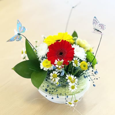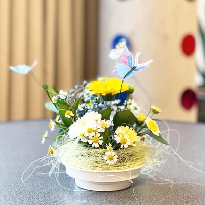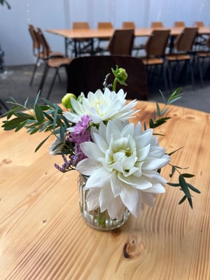 Zur Neueröffnung des Schloss Oberberg in Gossau, durften wir verschiedene Raumdekorationsstücke aufstellen und kleine Vasen für die Tische machen.