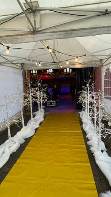 Tische, Barbereich, Raumdekoration, Fotobox mit Fotowand und zu guter letzt, legten wir noch den roten Teppich aus.