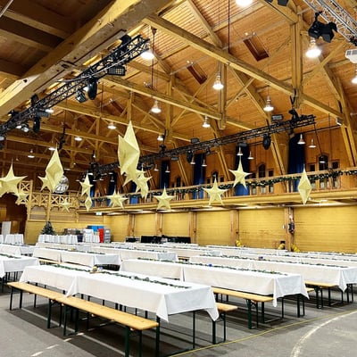 Auch dieses Jahr durften wir die Jahresend-Feier von Sulzer Management AG dekorieren. Diesmal wurde die Reithalle Teuchelweiher in Winterthur passend zur Weihnacht von Decke bis Fuss von uns dekoriert.