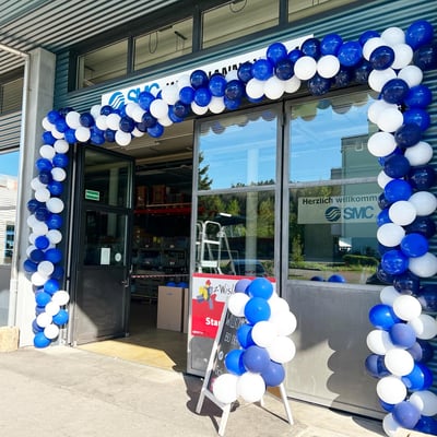 Für das Wochenende der offenen Türen der SMC Schweiz AG in Weisslingen, durften wir das Eingangstor mit einer XXL Ballongirlande schmücken und eine Willkommenstafel beschriftet und verziert stellen, welche den Besuchern den Weg wies.