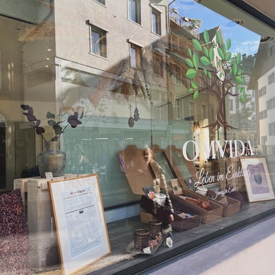 Für das Yogastudio Omvida durften wir die tollen grossen Schaufenster dekorieren. Auf Natürlichkeit haben wir gesetzt und den Verkaufsstücken im Schaufenster einen Platz gegeben.