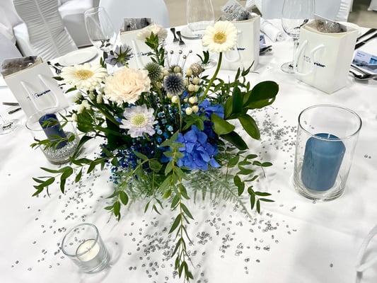 Zum 150-jährigen Jubiläum der Forster Profilsysteme AG in Romanshorn, durften wir in Ihrer Produktionshalle die Tische dekorieren und ein Empfangs- und zwei Bühnenbouquets kreieren.
