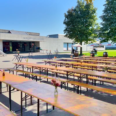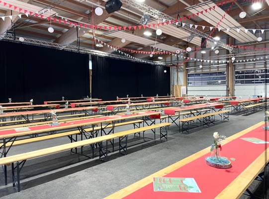 Anlässlich des Viva Erlebnistages der Raiffeisenbank, durften wir die Bündner Arena in Cazis mit Wimpelketten und Lampions dekorieren.